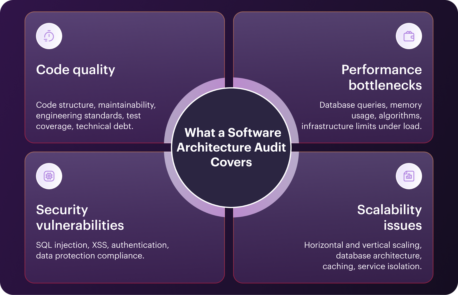 A software architecture audit provides executives with an objective assessment of technical assets before critical business decisions. Any changes to a system require independent validation of software quality and scalability. Companies that conduct audits before expansions or scaling internal operations avoid costly discoveries.