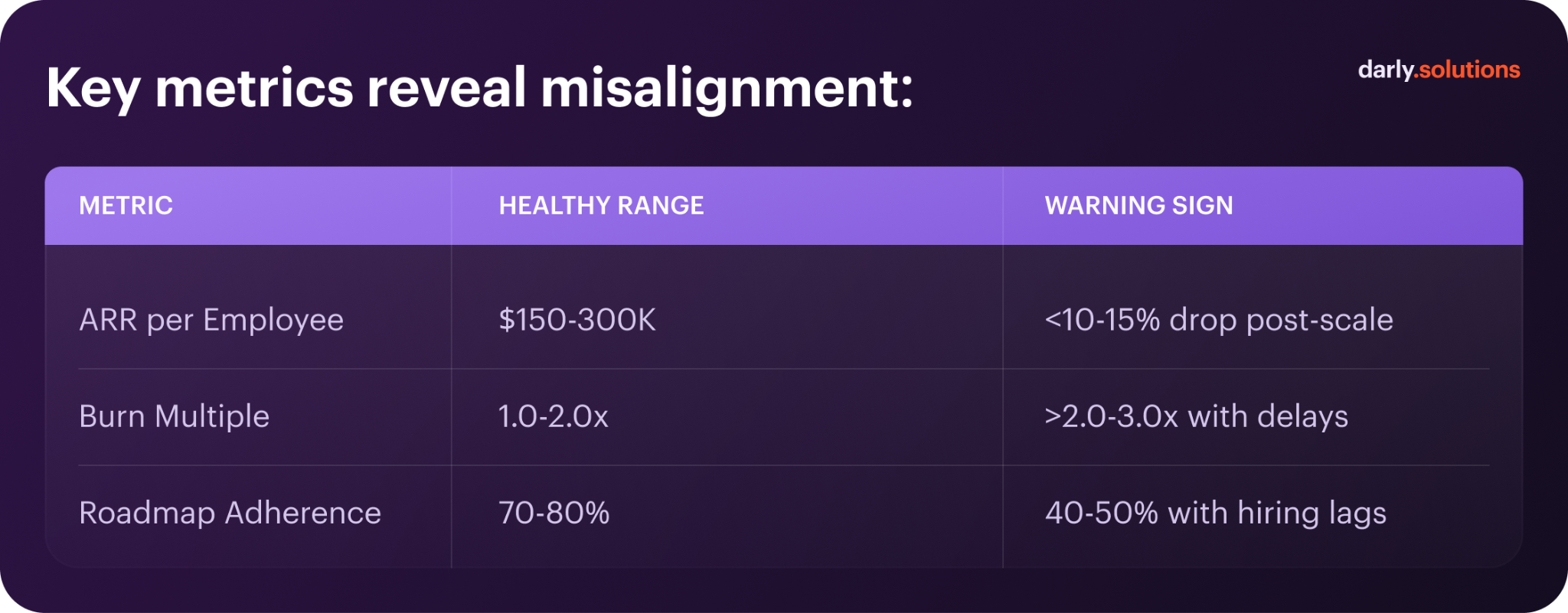 - ARR per employee falls below the $150-300K benchmark, signaling inefficient resource use.