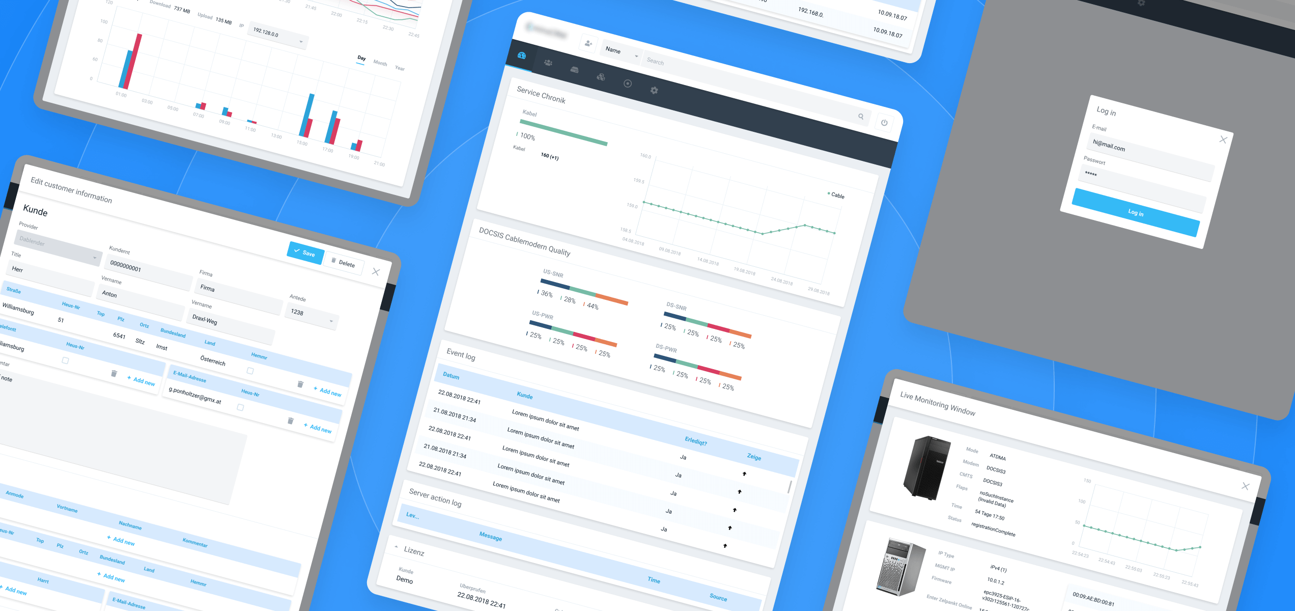 Finally, the CRM system allows ISP customers to view their personal data, as well as their connection status, network provisioning devices, and their IP addresses. All the technical data is organized in an easy-to-grasp layout with a clear information hierarchy to avoid overloading customers with information.